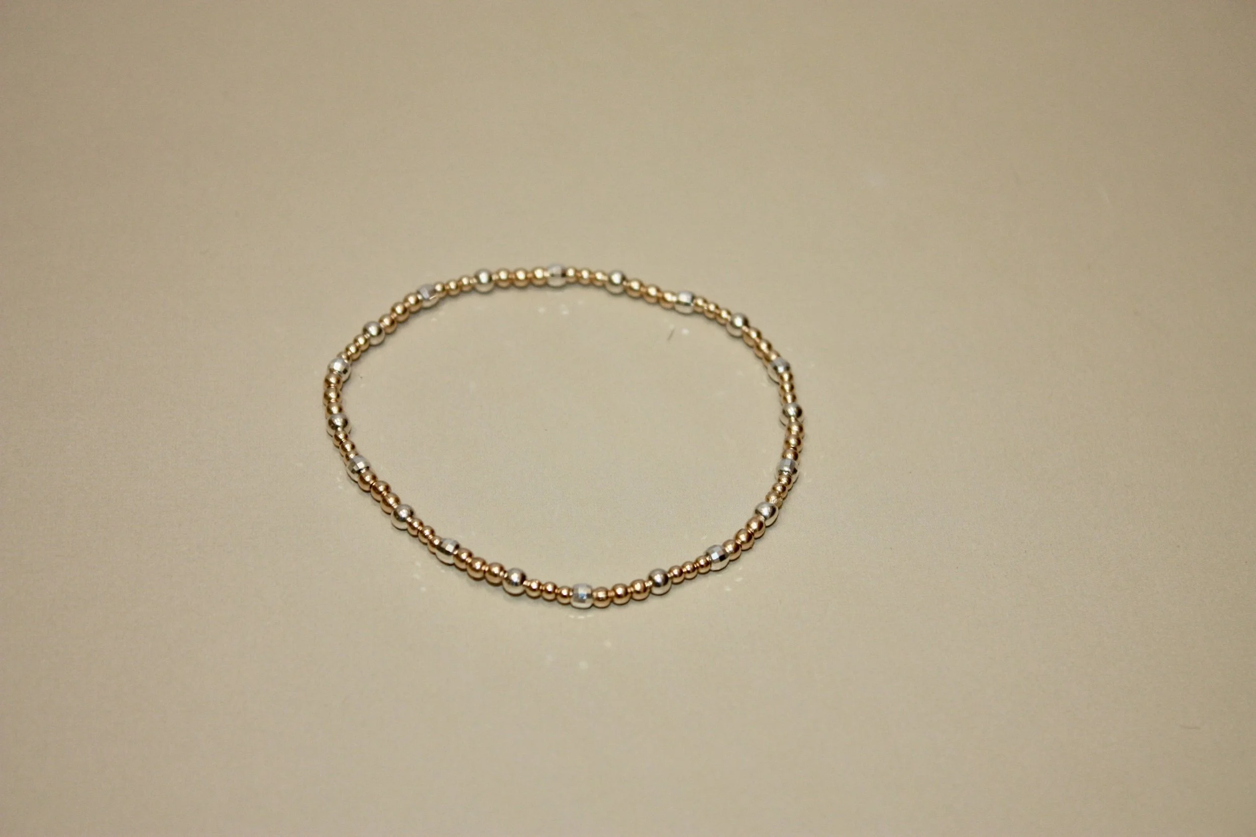 Store 14k 3mm Gold-fill and 4mm .925 Sterling Silver disco ball beaded stretchy bracelet $45.00 Add to Cart Added! 14k 3mm + 4mm Gold-fill Beaded Bracelet $45.00 Add To Cart Added!